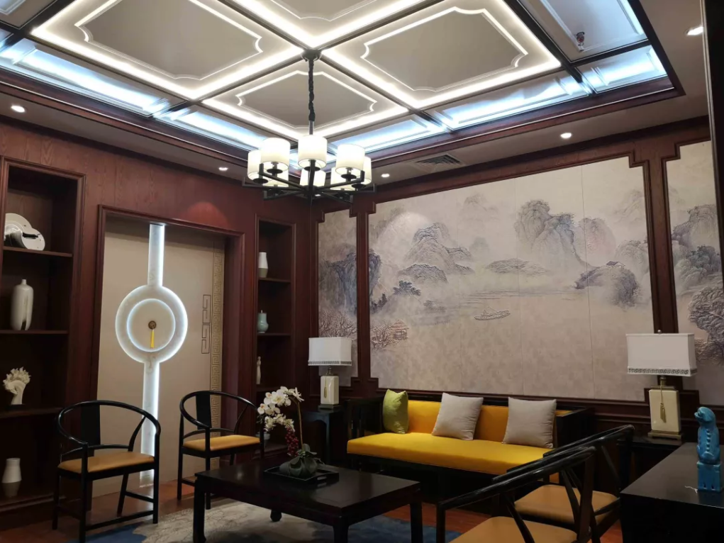 大规格安装,从视觉上给人一种延伸扩大的感觉,使空间更显开阔,成为不少别墅豪宅的首选。在产品设计上,大规格吊顶大板因为单片面积较大,可以承载的纹理设计元素更多,因此装修出来的整体空间纹理图案效果更加完整和立体,板面所体现的细节也更加丰富。
